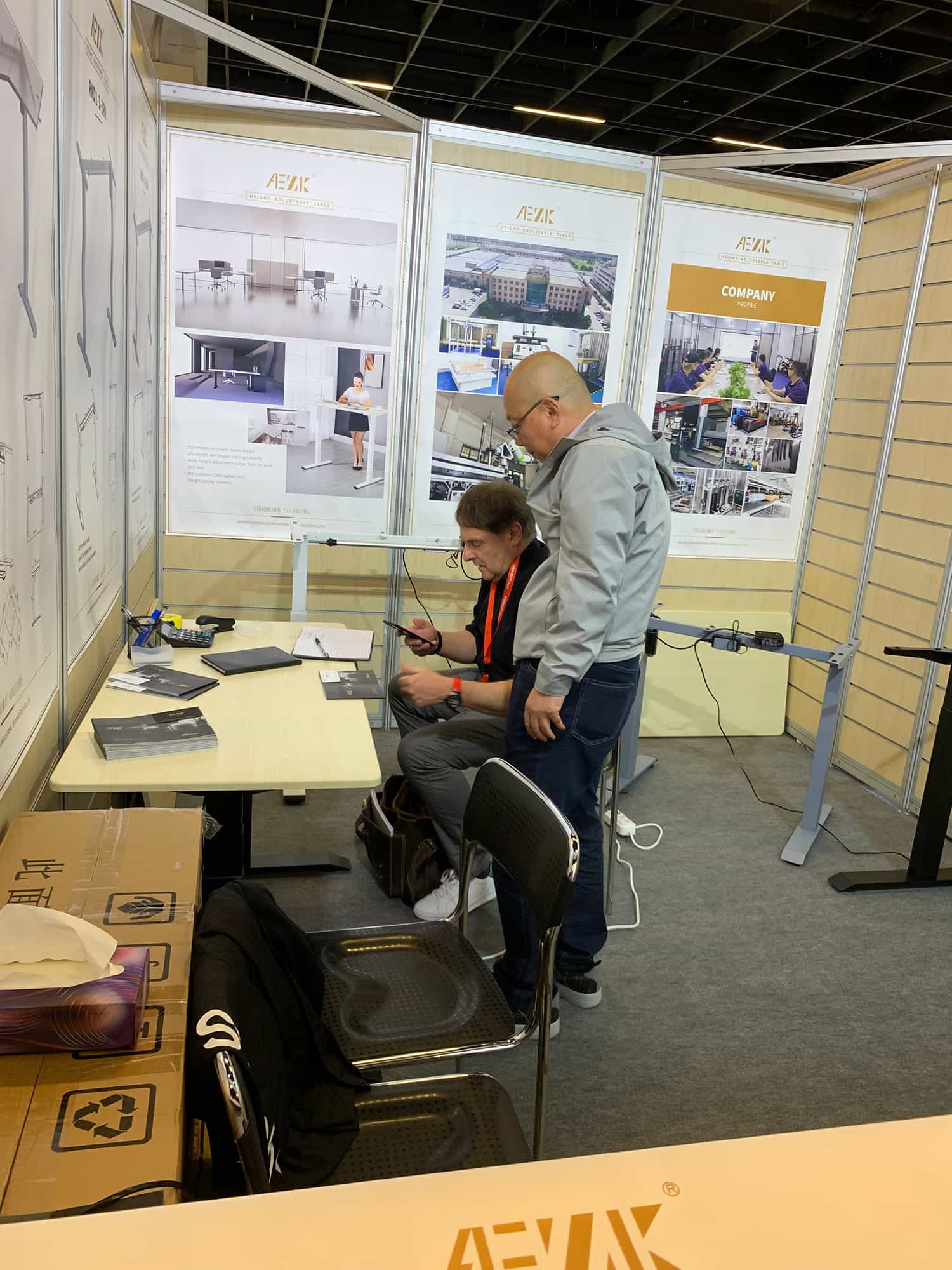 Titolo: Mostra a Colonia/Germania, che presenta le ultime scrivanie a motore singolo e doppio motore. Le personalizzazioni sono benvenute.